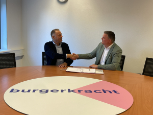 Op de foto staan Han von den Hoff, Directeur/bestuurder Stichting Burgerkracht Limburg en Geert Versteegen, Directeur van Pink Elephant Zuid